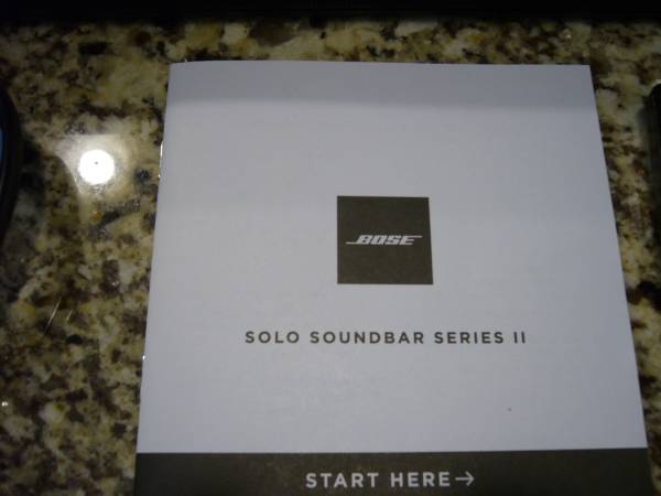 Bose Solo Soundbar Series II Includes optic cable, power cord, remote, and manual. Go to this website for all details: worldwide.Bose.com/Support/SBSollii Works great