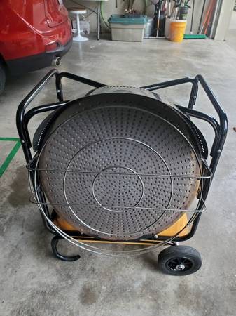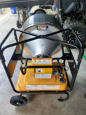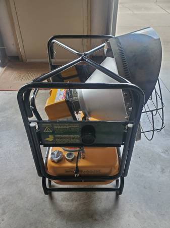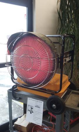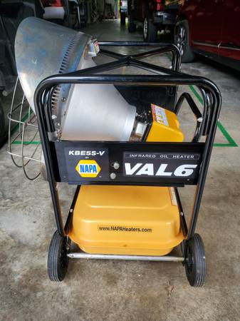 Seeking a new home for this VAL6 #KBES5-V. Perfect radiant heater for inside or out burns clean, odorless and smokeless. Can be used for a large outbuilding area, new construction home, animal stable or an outdoor project when the temp drops. Runs around 10 hours on everyday diesel fuel or kerosene. Boosting 100,00 BTU/HR and can be taken anywhere you need. Features 11-gallon tank, 110 volts, auto tilt shut off and position handle. Retail price on this unit is $1759 or more. Own the sun and stay warm when it gets cold out.