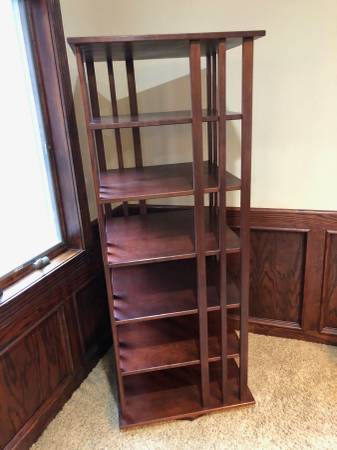 SOLID CHERRY REVOLVING 6-SHELF MISSION STYLE BOOKCASE. Condition is Used. Custom made. Dark Cherry.