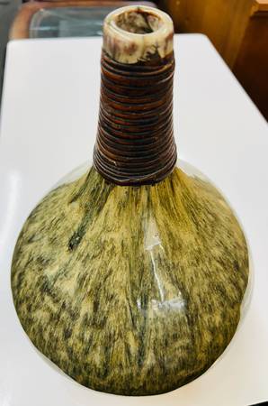 Round green large approx 12” tall vase. Very pretty! Price was $24.99 now on SALE ………………for only $19.99 plus sales tax. Can be seen and purchased in furniture area at Mike’s Unique Flea Market 3335...