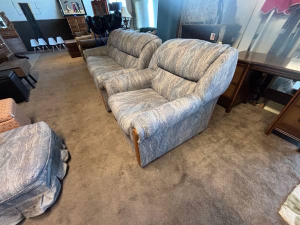 In overall good condition. Price includes all three pieces. Could probably use a little more cleaning,but overall they are in good condition with no major issues. The sofa measures 82”w x 38”d x 36”t with a seat height of 18.5”. The chair has the same measurements except the width which is 34”. The ottoman measures 27”x21”x 14”t. Pick up is on Battlefield rd just west of Scenic Ave at Battlefield Nu-2-U Gallery. All purchases are subject to sales tax.