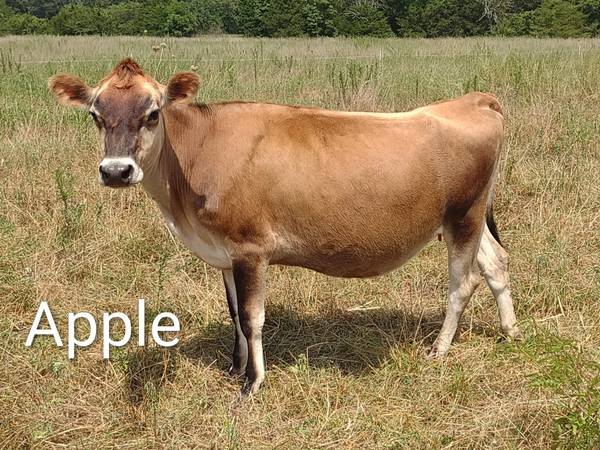 (Pending) Apple born on 1/14/23, came from a local dairy as a calf and grafted onto one of our cows, A2A2 by parentage. Horned? Jersey. Hasn't had any grain or shots. Exposed to an A2A2 fleckvieh bull. $2500.
