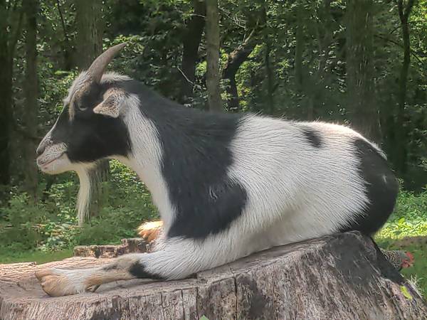 I'm selling the last of our goats. Negerian dwarf females. The black & white one is partially a fainting goat. Two of them are 3 years old. The mostly black one is 2 years old.