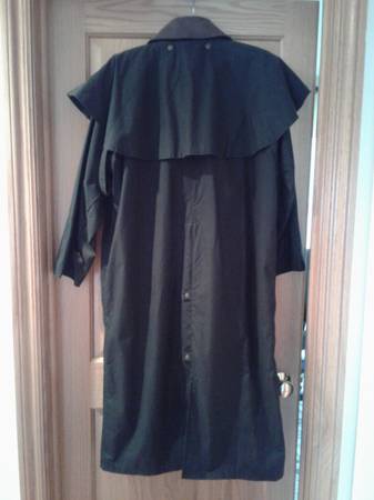 "THE ORIGINAL AUSTRALIAN DROVER COAT"! Unisex, Size Small, Black, 100% Cotton Oilskin, 100% Genuine Leather Collar, Dual Snap Closure, Detachable Cape, Throat Latch, Rear Saddle Gussets, Storm Flap,...