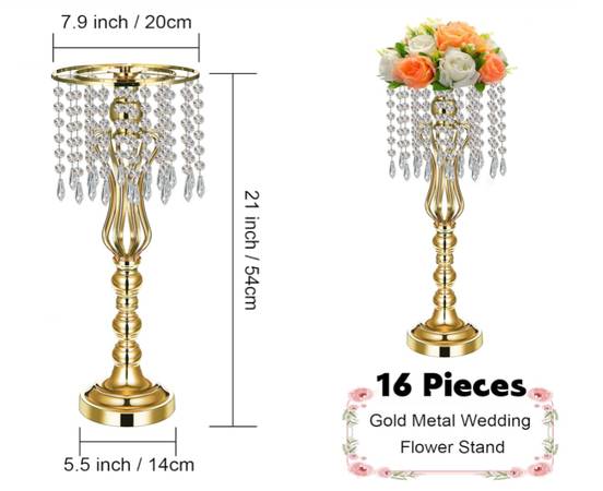 Flower Stand Set: we will provide you with 16 pieces of gold vases for centerpieces in total, measuring approx. 21.3 inches/ 54 cm tall.
