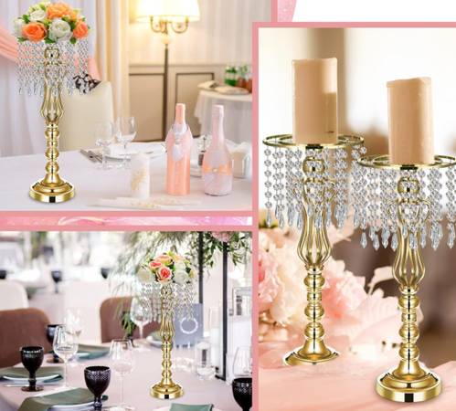 16x Chandelier Centerpieces Crystal Metal Flower Vases Candle Holders Wedding Party Holiday
