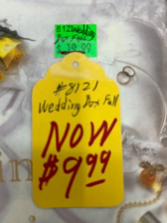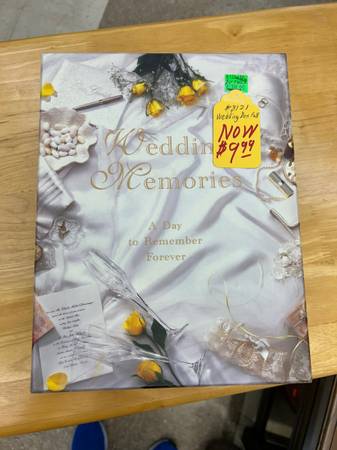 Wedding Memories box with register, photo album, and MORE!! Price is lowered to $9.99 plus sales tax. Can be seen and purchased in the front I-1 booth by the cash register at Mike’s Unique Flea...