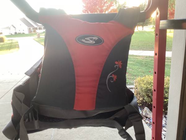 New Stohlquist Kayak life jacket. Light red/gray. Front snap compartments. Multiple adjustment points.